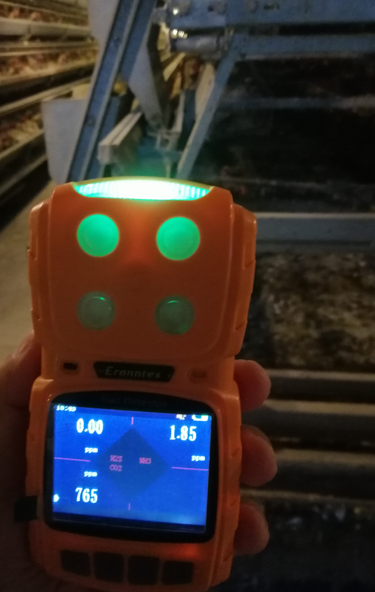 蛋雞舍通風(fēng)量不僅影響舍內(nèi)溫度的穩(wěn)定性和空氣質(zhì)量,更影響蛋雞的健康和生產(chǎn)性能。國(guó)內(nèi)傳統(tǒng)蛋雞舍主要是刮板式清糞系統(tǒng),其清糞周期較長(zhǎng),且存在飲水器漏水、清糞不徹底等問(wèn)題,容易造成雞糞發(fā)酵,導(dǎo)致舍內(nèi)濕度、二氧化碳和氨氣濃度較高。為保證雞舍內(nèi)有害氣體不影響蛋雞的健康和生產(chǎn)性能,蛋雞舍內(nèi)二氧化碳濃度上限為 1500 mg/m3 ,蛋雞舍內(nèi)氨氣質(zhì)量濃度基本不會(huì)超過(guò) 15 ppm。見(jiàn)圖1、圖2。
