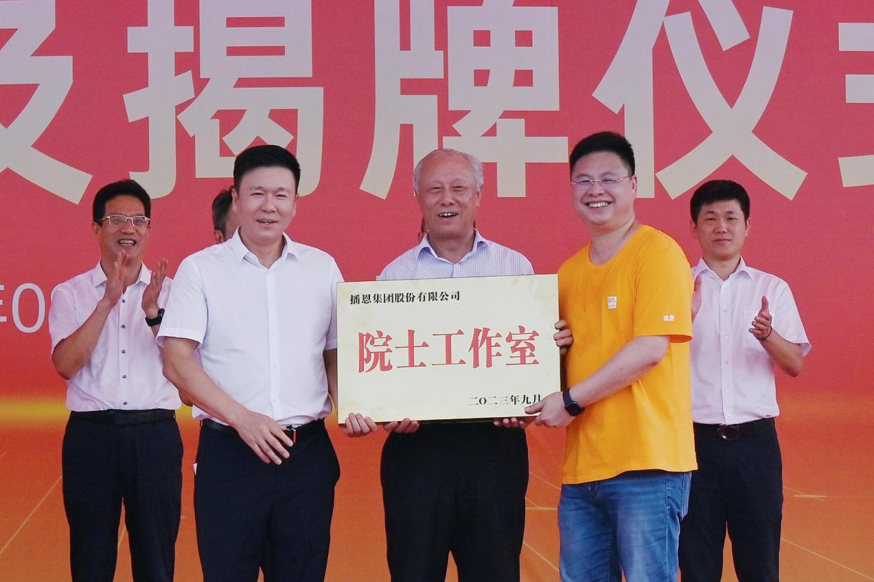 羅瑞華副市長為鄒新華董事長授院士工作室牌,李德發(fā)院士見證